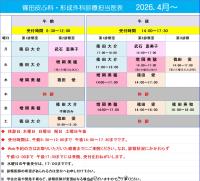 診察担当医表のご確認をおねがいします。